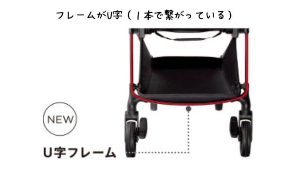 1本で繋がったU字フレームになったことで、ぐらつき軽減にくわえ押しやすさもUPしています。